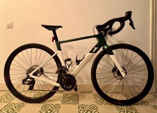 Scott Addict 20 Disc Vendo mi Scott Addict 20 del 2025, con muy poco uso (ni tres meses y apenas unos cientos de kilómetros). La bici está prácticamente nueva, sin caídas y siempre guardada en interior. La vendo con mucha pena, porque tras hacerme un estudio biomecánico he descubierto que la talla me queda grande. Si no fuera por eso, me la quedaría sin pensarlo. Detalles técnicos: Cuadro de carbono Scott Addict Disc HMF Grupo Shimano Ultegra Di2 12v, electrónico Frenos de disco hidráulicos Ultegra Ruedas Fulcrum WIND 42 Disc (perfil medio de carbono) Manillar y tija de carbono Estado: impecable en general,