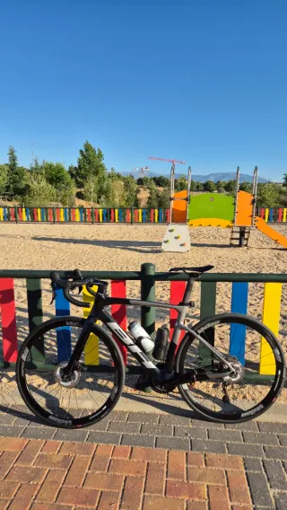 Bicicleta de carretera BH RS1 3.0 con un diseño moderno y aerodinámico. - Cuadro de carbono. - Frenos de disco. - Ruedas Vision. - Incluye portabidón. - Shimano 105 12v. - Cableado interno. - Talla S, yo mido 170cm. Comprada en la Grupetta, con factura y garantía del cuadro de por vida. Apenas 2.000km demostrables, se vende porque no la uso, está como nueva. OPORTUNIDAD!!