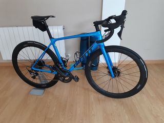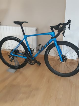 Bicicleta de carretera Giant TCR de carbono. - Cuadro y horquilla de carbono. - Ruedas Eve carbono de perfil 50 - Frenos de disco. Montada toda en ultegra Talla M Perfectas estado recién revisada