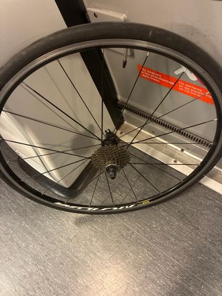 Rueda de bicicleta marca MAVIC KSYRIUM ELITE 5 delantera 700c se encuentra en buen estado bien centrada y con muy buena rodada - Llanta de aluminio. - Radios planos negros. 30€ NO ENVIO
