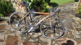 Bicicleta carretera fondriest, talla L, cuadro aluminio, horquilla y tija de carbono Kuips, medidor velocidad en rueda trasera. Precio no negociable.