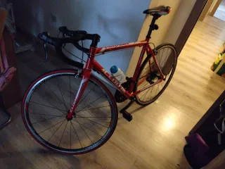 Bicicleta de carretera de color rojo, ideal para entrenamientos y rutas. - Cuadro de aluminio. - Ruedas de 700c. - Entrego calas de repuesto.