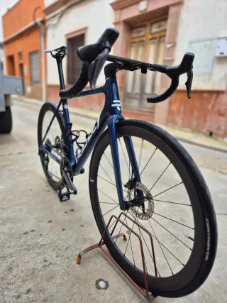 Transmisión completa Shimano Dura Ace Di2 y bielas Aldhu carbon 52-36 165mm, potenciómetro Favero RS 1, cubiertas tubeless Michelin Powercup de 28mm, manillar integrado y tija de carbono ..muy ligera y muy poco uso, factura reciente de 2026. Precio sin ruedas ni pedales: 4400€.