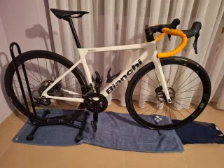 Bicicleta de carretera Bianchi Sprint en talla M (50). Montada con grupo Shimano 105 mecanico - Cuadro de carbono - Manillar aero - uso 6000 km - Ruedas fulcrum 818 con cubiertas vittoria corsa en ancho 30 - soporte garmin incluido - portabidones y pedsles incluidos - estrenada en marzo de 2024