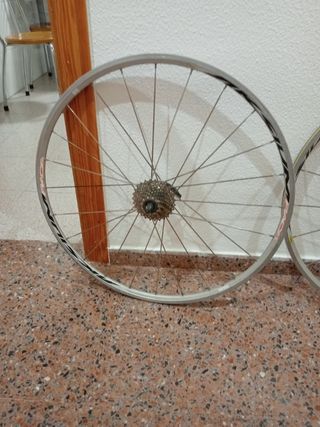 Ruedas de carretera 700c Prácticamente nuevas, no tendrán ni 500 kilómetros. Con cassette de 9 coronas, 14 - 25. Se le pueden montar 10 y 11 coronas. Posibilidad de envío.
