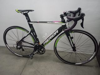 Bicicleta de carretera Mérida Reacto 4000. Lista para competir , ( la usé la semana pasada en un triatlón) y solo la cojo para carreras - Cuadro de carbono. Talla 52 ( s - m ) Muy ligera , colores equipo lampre , tengo garantía del cuadro , - Ruedas de carbono perfil de 44, - manetas 105, desviador , cassette Shimano, ultegra 11 velocidades, frenos ultegra, - bielas FSA 52 - 36 - Diseño aerodinámico , modificada y preparada para triatlon, con acoples deda - ruedas continental, -potencia y manillar de carbono , porta bidones y sillín mejorados