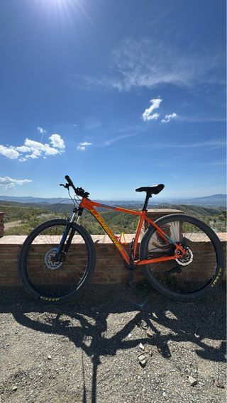Bicicleta de montaña en perfecto estado, lista para la aventura. - Cuadro de color naranja vibrante. - Ruedas Maxxis. - Frenos de disco.