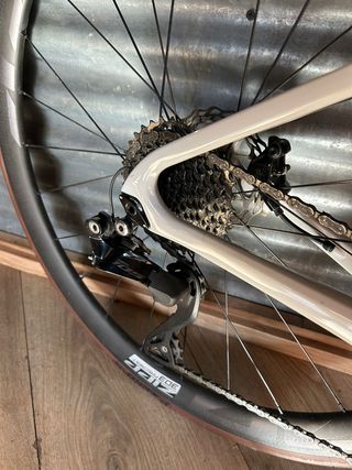 Bicicleta de gravel Megamo Silk 07 del 2026. - Cuadro de carbono. - Talla XS - Ruedas de 700c. - Frenos de disco. - Transmisión Shimano GRX 12v. - Manillar integrado de carbono. - Comprada en Octubre. - Utilizada 5 veces por asfalto. - Se entrega tal como viene de origen. Sin pedales, porta bidones, soporte GPS y protector cadena.