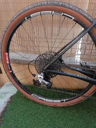 Vendo bicicleta gravel talla XL, 58-61 montada en: -Cuadro asiático de carbono con incisiones para alforja delanteras y trasera. Talla grande para persones de mas de 1,90 de altura. -Bielas Sram Force Monoplato de 175mm y plató de 42 dientes. -Desviador trasero Sram Force 11 velocidades -Manetas de preno hidráulicas Sram Rival -Ruedas DT Swiss perfil 32 mm y bujes DT370 -Pneumàticos Semi Nuevos (200kmts) -Manillar con dropp de 42mm y potencia KNC de 100mm -Sillin asiático de carbono -Pedales automaticos Exustar 215 No tengo prisa para vender, precio NO negociable y no despiezo ni cambio por nada.