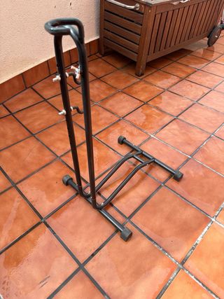 Soporte para bicicleta de suelo con doble función: – Aparcamiento: permite guardar la bici apoyando la rueda delantera. – Posición vertical: levantando la bici puedes trabajar cómodamente para limpieza, engrase o pequeños ajustes. – posibilidad de elevar la rueda trasera para realizar engrase de la transmisión. Apto para bicicletas de carretera, MTB, gravel, urbanas y ruedas desde 26 a 29” Estructura metálica resistente con patas de goma para no marcar el suelo. Lo vendo porque ya no preciso Estado: muy buen estado, poco uso. Entrega en mano o envio. Tengo dos (venta juntos o por unidad)