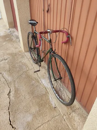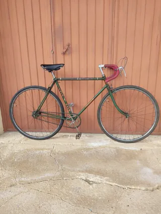 Bicicleta de carretera antigua completamente restaurada, actualizada y pintada, era una Rieju. Es talla S-M, yo mido 1,74 y me esta justica. Menos el cuadro, la horquilla y el manillar, todos los componentes son nuevos y modernos. Eje pedalier, bielas, pedales, platos, desviador, cadena, cambio, piñonera, cadena, frenos, manetas, cinta, sillín, cableado... Ruedas Mavic. Puedo incluir pedales automáticos. Grupo de 2x10: Casete 11-32, platos 50-34. Mejor ver y probar.
