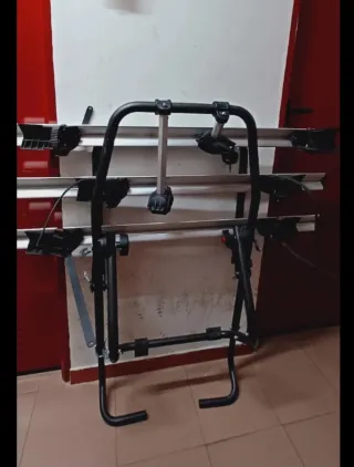 Portabicicletas diseñado para transportar hasta 3 bicicletas. - Estructura robusta de metal. - Soportes ajustables para las ruedas. - Brazos de sujeción para el cuadro de las bicicletas. Con sus gomas y cinchas originales . Compatible con todos los coches que no tengan portones de fibra .