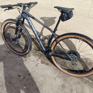 Especificaciones — Orbea Alma M25 29” (2019) 📍 Modelo: Orbea Alma M25 29” – año 2019 (hardtail XC / montaña) 📏 Tamaño de rueda: 29 pulgadas  📐 Cuadro: Orbea Alma Carbon OMP 2019 Boost Press Fit Taper (carbono, ligero y rígido)  🔩 Horquilla: Fox 32 Float SC Performance 100 mm con bloqueo remoto en el manillar, eje QR15x110 Boost  ⚙️ Transmisión: • Grupo 1×12 velocidades • Manetas: SRAM GX Eagle  • Cambio trasero: SRAM X01 Eagle Gold  • Plato: SRAM Stylo CNC Eagle Dub Boost 34 T  • Cassette: SRAM GX XG-1275 10-50 T  🛞 Frenos: Shimano MT501 / BR500 hidráulicos de disco  🛞 Ruedas: Mavic Crossmax TL 6-Bolt listo par