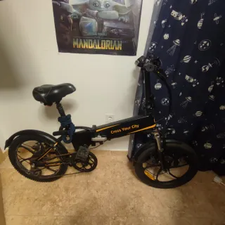 Bicicleta eléctrica plegable Engwe T14 en color negro. Diseñada para facilitar el transporte y el almacenamiento. - Marco plegable. - Ruedas de 14 pulgadas. - Doble asiento. Se vende por no usarse si te interesa escríbeme