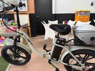 Bicicleta eléctrica plegable de la marca Kawasaki, ideal para desplazamientos urbanos. - Color plateado. - Diseño plegable para fácil almacenamiento y transporte. - Ruedas de 20 pulgadas. - Portaequipajes trasero. - Incluye luz delantera de mayor potencia que la que trae la bici En muy buen estado. Apenas se ha usado y por eso la vendo. Se puede entregar en mano en Granada y Málaga