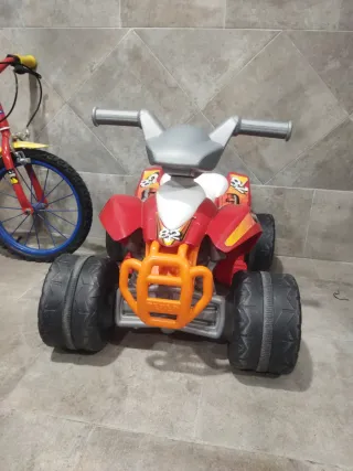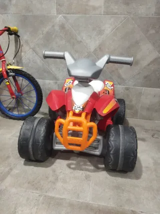 Quad eléctrico infantil de la marca Feber, modelo Racy. - Color rojo. - Diseño deportivo Niños de 18 meses a 3 años. Con su acelerador en el pie y ruedas robustas, proporciona una excelente estabilidad y control. Con una velocidad máxima de 2 km/h, es lo suficientemente rápido como para que los niños se diviertan, pero lo bastante seguro para los padres. Además, tiene un peso máximo recomendado de 15 Kg, ideal para niños hasta los 3 años. Largo 70cm Alto 46 cm Ancho 45cm