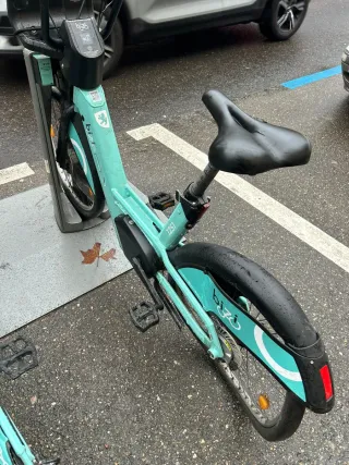 Bicicleta eléctrica BIZI en color verde menta. - Diseño moderno y funcional. - Asiento negro ergonómico. - Ruedas con guardabarros. - Pedales negros. - Número de identificación 1251.