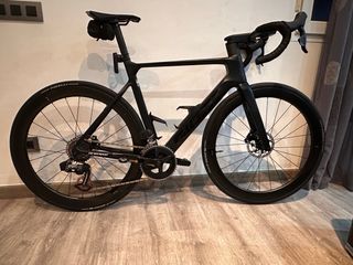 Bicicleta de carretera Giant en color negro. Se encuentra en muy buen estado. - Cuadro de carbono. - Frenos de disco. - Ruedas aerodinámicas. -Grupo completo Sram Force AXS 12 velocidades con potenciómetro