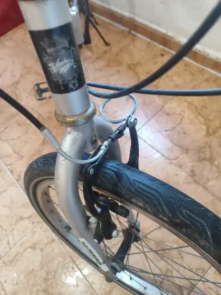 Bicicleta de paseo de la marca Giant en color gris. Ideal para desplazamientos urbanos. - Cuadro de aluminio. - Ruedas de 28 pulgadas. - Frenos V-brake. - Portabultos trasero. - Los cuatro cables nuevos -Sillin nuevo -( Solo abría que ajustar el freno de atrás y los cambios , soy novato y lo e intentado y no lo consigo)