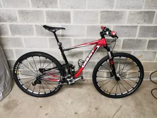Se vende bicicleta Giant Anthem 29, doble suspensión con 100mm de recorrido. Bien mantenida. Transmisión SRAM, desviador GX, manetas X7 Platos 26/38, piñón 11/36 Frenos Shimano Ruedas tubeless Precio con ruedas tubeless 25 mm DT Swiss+Mavic 1000€ (incluyo segundo set Mavic SLR) Precio con ruedas tubeless 19mm Mavic SLR (la trasera necesita centrar un poco) 800€