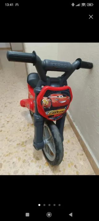 Bici de aprendizaje con diseño de Cars. - Manillar con puños negros. - Ruedas de plástico. - Decoración frontal de Rayo McQueen.