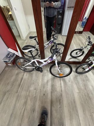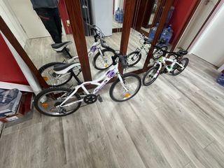 Bicicleta para niña de 20 pulgadas de la marca carratt. Está en buenas condiciones, funcionan los cambios y los frenos, aunque muestra señales de uso. - Marca: carrat - Tamaño de rueda: 20 pulgadas - Color: Blanco y azul