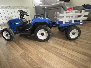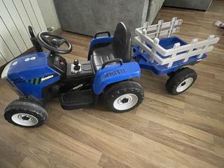 Tractor infantil azul con remolque