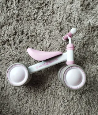Bicicleta de aprendizaje Molto, ideal para los primeros pasos en el mundo de las dos ruedas. Diseñada para fomentar el equilibrio y la coordinación. Muy poco uso casi nueva, se envía con la caja original - Color blanco y rosa. - Ruedas de goma. - Asiento ergonómico. Más productos de bebe en mi armario