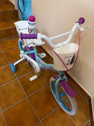 Bicicleta infantil con temática de Frozen, ideal para los más pequeños. Incluye ruedín para facilitar el aprendizaje. - Diseño inspirado en la película Frozen. - Ruedas de 14 o 16 pulgadas. - Incluye cesta delantera y portamuñecas trasero.