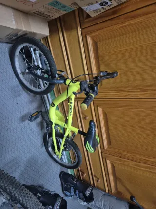 Bicicleta en perfecto estado,sin óxidos,sillín completamente nuevo,ruedas aún con sus pelillos. Sin uso se podría decir ya que a mi hijo le daba miedo,contiene ruedines aunque no salga en la foto Lo único que un par de pegatinas algo estropeada de estar guardada.Su precio en tienda es de 160€ Características: Cuadro de acero. 16 Pulgadas. Ruedas hinchables. Rodamientos de nylon. Válvulas americanas. Dos ruedas estabilizadoras. Freno delantero Caliper. Freno trasero de tambor. Porta imagen delantero decorado. Edades recomendadas: 5 a 8 años, aproximadamente