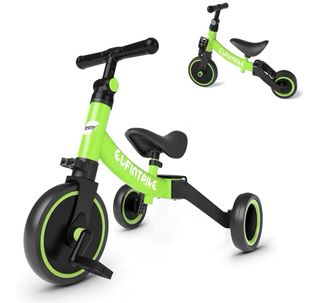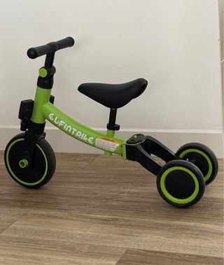 Bici evolutiva de color verde y negro, ideal para los primeros paseos. - Marco de color verde brillante. - Ruedas negras con detalles verdes. - Manillar negro. - Asiento negro.