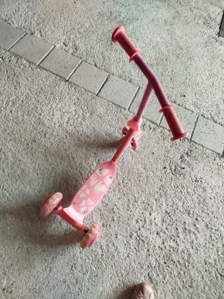 Patinete de tres ruedas en color rosa. Ideal para los más pequeños. - Tres ruedas para mayor estabilidad. - Manillar ajustable en altura. - Base antideslizante. - Ruedas con luces - Frenos como nuevos