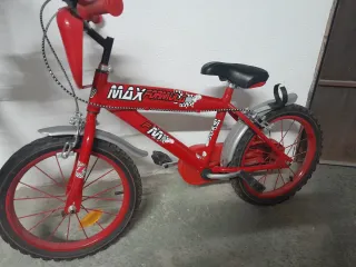 Bicicleta infantil de color rojo con diseño deportivo. - Marco de metal. - Ruedas de 16 pulgadas. - Guardabarros delantero y trasero. - Sillín ajustable. Regalo el casco. No hago envío