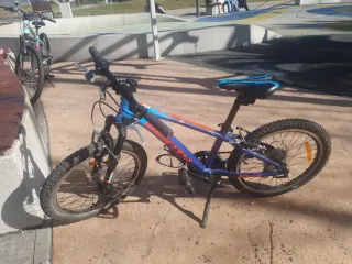 Vendo bicicleta infantil B-PRO de 20 pulgadas, ideal para niños y niñas de 5 a 8 años aproximadamente. Está en buen estado y lista para usar. Ha sido utilizada, por lo que tiene algunos roces en la pintura del uso normal, pero funciona perfectamente. Las ruedas están en buen estado y la pata de cabra funciona bien. No tiene cambios de marcha. Los frenos están ajustados y funcionan correctamente, aunque se pueden ajustar un poco más si se desea.