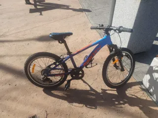 Bicicleta infantil de la marca Cube, ideal para los más pequeños. Su diseño es llamativo y está pensada para la diversión. ÚLTIMA SEMANA LUEGO KO QUITO, OPORTUNIDAD - Cuadro de aluminio ligero. - Ruedas de 20 pulgadas. - Frenos fiables. - Color azul con detalles naranjas. Imposible de pinchar tiene sistema antipinchazos, frenos, pedalier cambios mejorador...la vendo porque la pequeña se me ha hecho mayor, buena oportunidad...