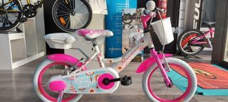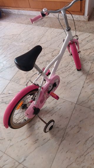 Bicicleta para niña, en buen estado. Ideal para aprender a montar en bici. - Tiene ruedines para mayor estabilidad. - Color rosa y blanco. - Tamaño de rueda: 16 pulgadas.Precio negociable