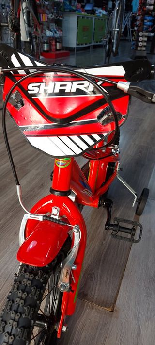 BICICLETA BOY 14 1V SHARK ROJA Cuadro y horquilla HI-TEN TIG Rueda libre con piñon de 1V de 16 dientes. Bielas de acero Frnenos de V-brake de aluminio Ruedas JUNIOR aluminio Cubierta JUNIOR 14x1,75 Manillar Junior Potencia Junior Sillín JUNIOR Pedal infantil resina negro Guardabarros delantero y trasero Cesta delantera Baulete trasero porta objetos