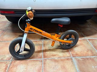 Bicicleta de equilibrio B'TWIN en color naranja, ideal para los más pequeños. - Marco de metal resistente. - Ruedas de goma. - Puños de goma para un mejor agarre.