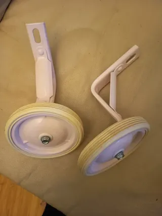 Ruedines (ruedas de entrenamiento) para bicicletas infantiles. Proporcionan estabilidad y ayudan a los niños a aprender a mantener el equilibrio. Son universales y ajustables para adaptarse a diferentes tamaños de bicicletas (desde 12 hasta 20 pulgadas). Cuentan con una superficie antideslizante para una mejor tracción y seguridad. En perfecto estado