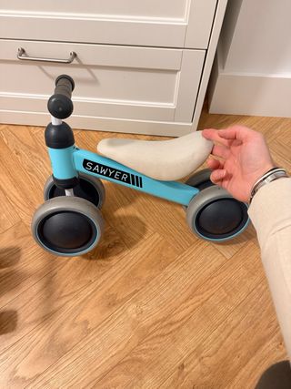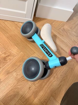 Bicicleta de equilibrio de color azul, marca Sawyer. Ideal para los más pequeños. - Asiento acolchado. - Ruedas de goma. - Manillar con puños.