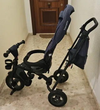 Triciclo infantil de la marca Lionelo, ideal para paseos. - Color azul marino. - Asiento acolchado. - Barra de seguridad. - Reposapiés. - Ruedas resistentes. - Bolsa de almacenamiento.