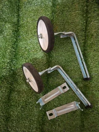 Juego de ruedines para bicicleta infantil. Ayudan a los más pequeños a aprender a mantener el equilibrio. - Fabricados en metal. - Incluye dos soportes de montaje.