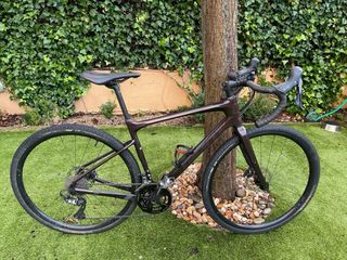 Bicicleta de carretera Specialized Tarmac de carbono talla 58 Ruedas Mavic Aksium Cambio y manetas Sram Force La bici ha tenido uso pero está en perfectas condiciones, algún arañazo pero cambia perfecta y va muy bien, sigue en uso cuando voy al pueblo. Ideal para iniciarse en carretera.