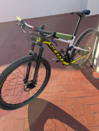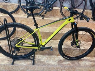 Bicicleta Scott Scale de carbono en talla M, con mejoras. - Cuadro de carbono. - Talla M. - Color amarillo y negro. Frenos shimano xt Ruedas mavic crossmax