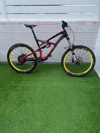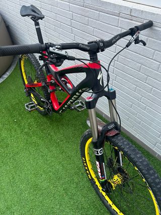 Bicicleta de montaña Specialized S-Works Enduro con ruedas de 26 pulgadas talla M. - Cuadro de carbono en rojo y negro. - Suspensión delantera Fox. - Ruedas Mavic - Frenos Shimano XT -Transmisión Shimano 11v Solo entrega en mano