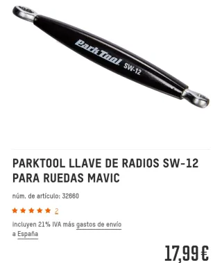 2 Llaves de radios Park Tool, 1 es la SW-12 expecifica para ruedas MAVIC y otra llave para cabezas de radio convencionales de 3,5 m.m. CARACTERÍSTICAS : las tienes en las fotos
