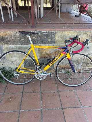 Bicicleta de carretera Giant Pelotón Super Lite, ideal para disfrutar del ciclismo. Cuadro de aluminio Ruedas mavic Freno de zapata 27 velocidades 1 piñón con 9 coronas Y tres platos delante Cambio shimano io5 Cambio en manetas de freno Frame size 55 cm