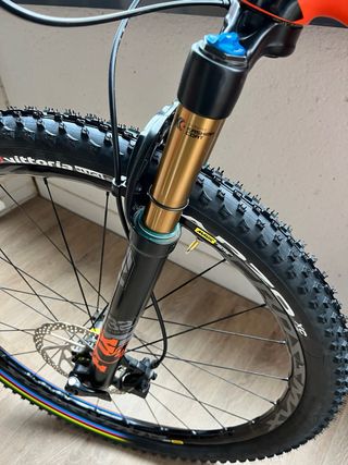 Bicicleta de montaña KTM Myroon de color naranja. - Cuadro de carbono - Ruedas Mavic - Horquilla Fox 32 sc - Frenos de disco shimano 6100 Cassette garbaruk 10-46 Plato rotor ovalado Transmisión Sram Cubiertas vittoria mezcal y barzo nuevas Talla S Revisada para la venta. En perfectas condiciones.