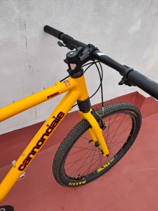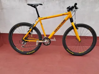 Bicicleta de montaña Cannondale F300 en color amarillo. Cuadro de aluminio. Ruedas de 26 pulgadas Mavic banda cerámica. Frenos XTR ceramic. Montada en XT 8v. Bielas Coda. Suspensión Fatty con bloqueo. Muy Buen estado.