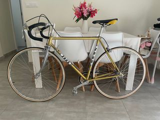 Bicicleta de carretera clásica de la marca Zeus, talla 55. Un modelo icónico para los amantes del ciclismo vintage. - Cuadro reynods de color dorado. - Ruedas de radios mavic aluminio . - Sillín negro con detalles amarillos. Todos los componentes zeus Pintura del cuadro original , no es re pintado Cubierta michelin Todo en perfecto estado